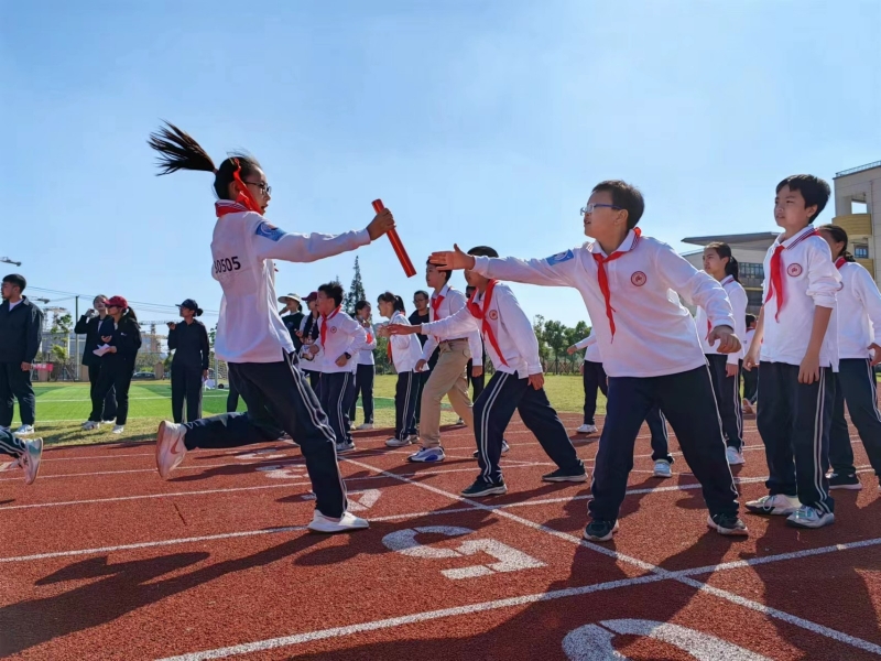 未觉三夏尽,时序已新秋。2023年10月18日上午,我校迎来了第一届田径运动会。本届田径运动会以“快乐运动,健康生活”为主题,共设单人项目8项,集体项目3项,亲子项目1项。出席本次运动会开幕式的领导有校长金卫东、校区负责人姚勇、年级负责人梅隽婕以及人事干部孙晋超。全校师生聚集在绿茵场上,以健康面貌,健美身姿、健壮身体共赴这场精彩的体育盛会。