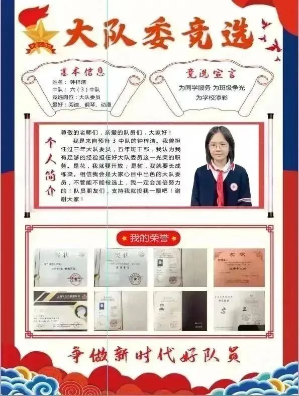 大队委员候选人们制作了宣传展板,为此次选举工作造势。